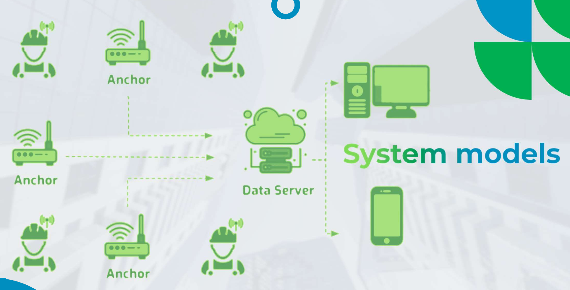 Consists of fixed Anchor devices installed at the worksite, using UWB technology to transmit and receive signals from mobile devices. This system serves as the foundation for positioning and data transmission. See details about the wireless communication solution here.