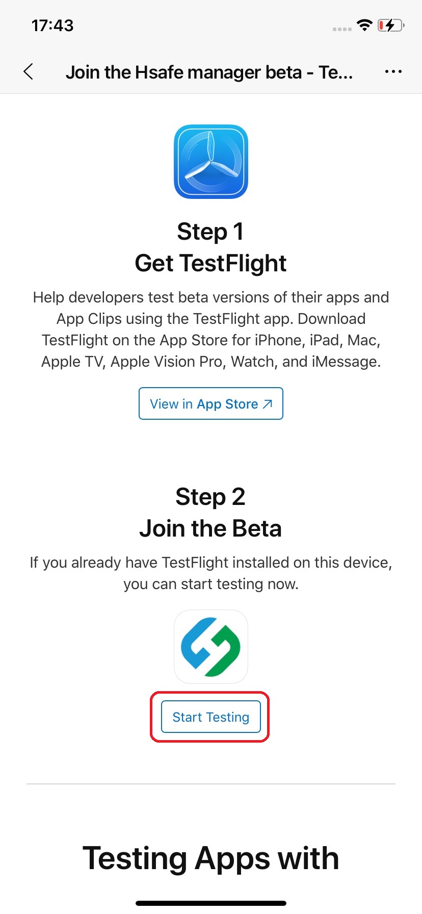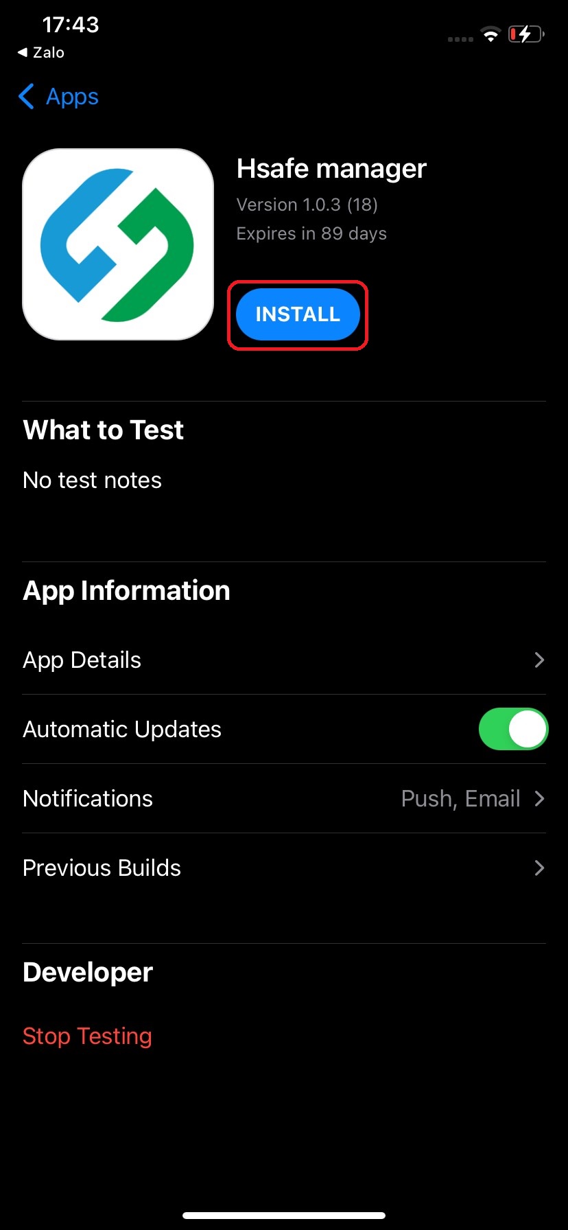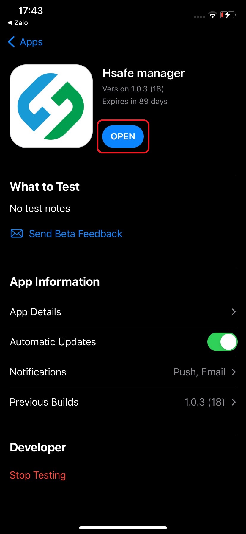* Nhấn vào đây để mở link tải ứng dụng và chọn "Start Testing"